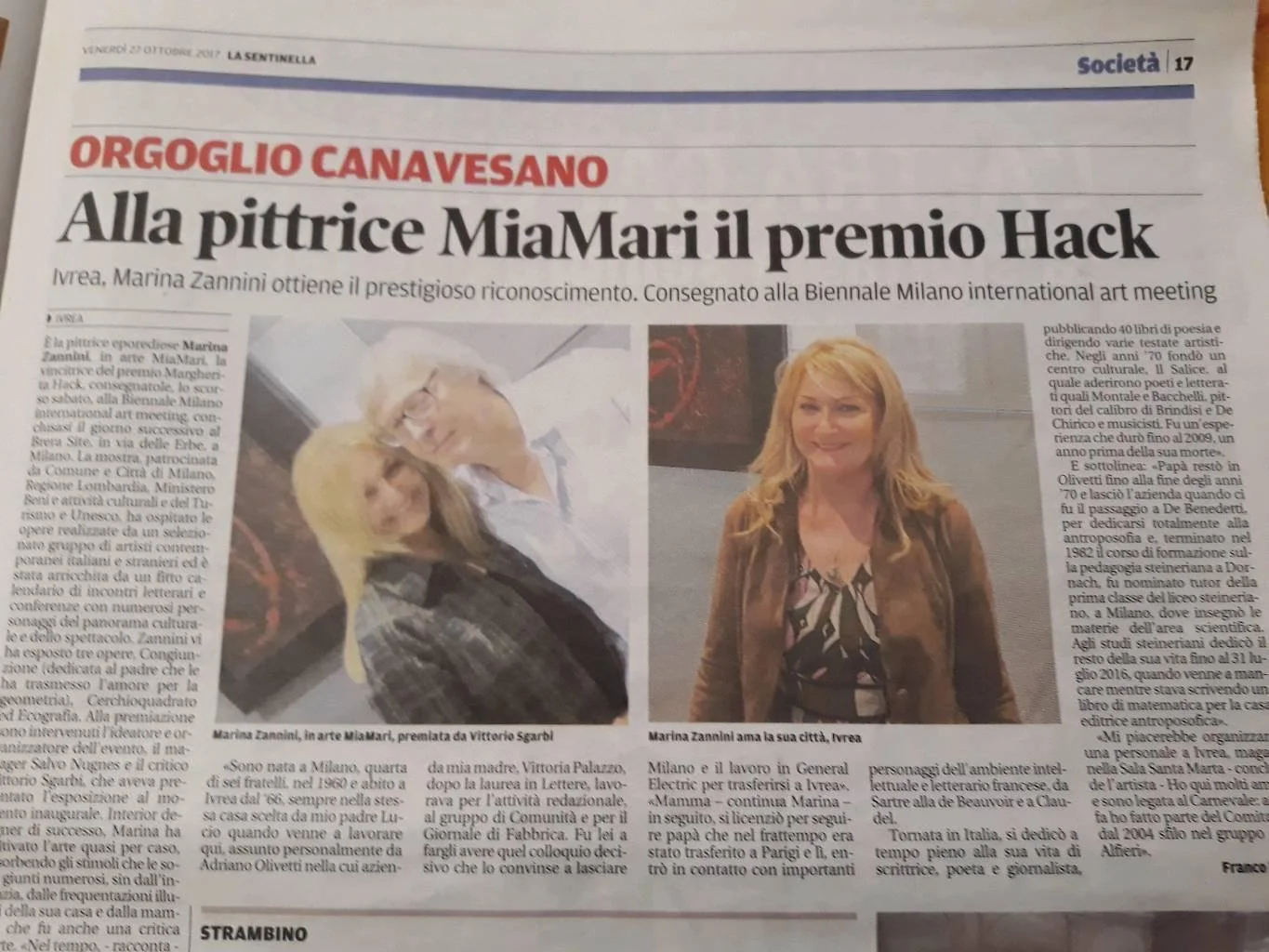 Ivrea, Marina Zannini ottiene il prestigioso riconoscimento. Consegnato alla Biennale Milano international art meeting
